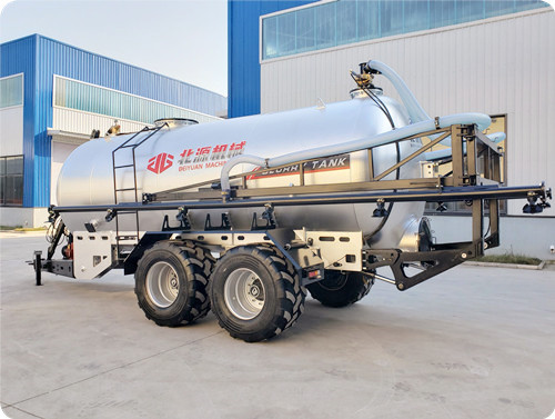 2FYP系列液态喷洒机(沼液罐车),以拖拉机后输出轴为动力,驱动真空泵进行工作,控制完成吸肥和喷肥工作。主泵、控制阀、承重车轴等部件采用进口产品,性能稳定可靠。该液态撒粪车罐体材质采用了压力容器专用高强度钢,罐体內外均喷有防腐、耐酸碱性能优越的涂层,罐体内部集成有坚固的防浪涌挡板,保证罐体有足够的抗拉强度、冲击韧性与耐腐蚀性。该粪污撒粪车罐体前部安装有液位显示仪,方便操作者实时观察罐体内液体容量变化。该机设计配备多级过载保护装置,对主泵、罐体、管道等进行压力保护。