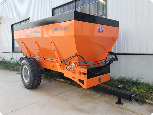 2FGH-Y系列双圆盘撒粪车,具有结构紧凑、适用范围广、撒播均匀、效率高等特点!该拖拉机带撒粪车利用拖拉机动力输出作为驱动,带动车厢内部的输送链自动把肥料向后输送,通过高速旋转撒播盘对肥料进行撒播作业。适用于大型农场、草地、牧场、公路等,进行厩肥、粪肥、有机肥、石灰、酒糟、糖渣、颗粒肥等不同形态的物料抛撒工作!该拖拉机撒粪车自带液压油箱,装载容积大,容量大小可定制!并可以根据用户需求调整撒肥量。达到提高施肥效率、降低劳动强度、改善土壤结构的目的。