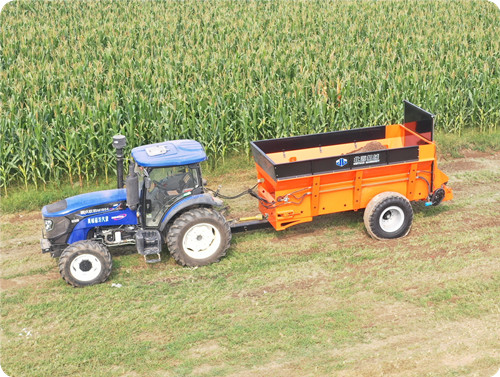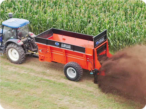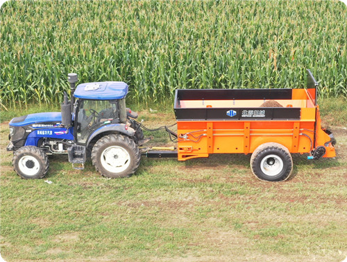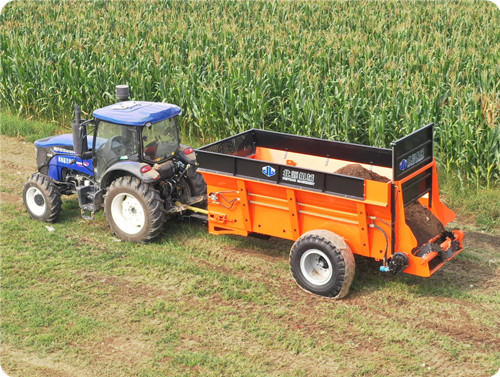 2FGH-H系列横绞龙扬粪车,用于抛撒各种干湿粪肥,特别是含水量大的黏湿粪肥和大块粪肥。可使抛撒肥料被充分破碎、均匀抛撒,具有较好的粉碎及撒布效果。该农家肥扬粪车由拖拉机牵引带动,撒肥车肥料输送系统直接采用拖拉机液压输出动力驱动,带动车厢内部的输送链自动把肥料向后输送,肥料输送快慢可调节;肥料抛撒系统由拖拉机后动力输出轴驱动,通过高速旋转的横螺旋绞龙装置将肥料打碎并均匀抛撒出去,施肥量可调节。该大型扬粪车适用于大型农场、牧场、草地等地的粪肥、有机肥抛撒作业,可实现大规模统一、高效施肥作业,降低劳动强度,提高施肥效率,节省成本,实现各种经济效益。
