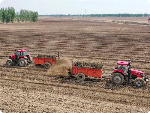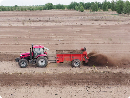 2FGH-H系列横绞龙扬粪车,用于抛撒各种干湿粪肥,特别是含水量大的黏湿粪肥和大块粪肥。可使抛撒肥料被充分破碎、均匀抛撒,具有较好的粉碎及撒布效果。该湿粪扬粪车由拖拉机牵引带动,撒肥车肥料输送系统直接采用拖拉机液压输出动力驱动,带动车厢内部的输送链自动把肥料向后输送,肥料输送快慢可调节;肥料抛撒系统由拖拉机后动力输出轴驱动,通过高速旋转的横螺旋绞龙装置将肥料打碎并均匀抛撒出去,施肥量可调节。该通辽用扬粪车适用于大型农场、牧场、草地等地的粪肥、有机肥抛撒作业,可实现大规模统一、高效施肥作业,降低劳动强度,提高施肥效率,节省成本,实现各种经济效益。