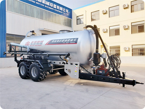 2FYP系列液态喷洒机(沼液罐车),以拖拉机后输出轴为动力,驱动真空泵进行工作,控制完成吸肥和喷肥工作。主泵、控制阀、承重车轴等部件采用进口产品,性能稳定可靠。该液态撒粪车罐体材质采用了压力容器专用高强度钢,罐体內外均喷有防腐、耐酸碱性能优越的涂层,罐体内部集成有坚固的防浪涌挡板,保证罐体有足够的抗拉强度、冲击韧性与耐腐蚀性。该粪污撒粪车罐体前部安装有液位显示仪,方便操作者实时观察罐体内液体容量变化。该机设计配备多级过载保护装置,对主泵、罐体、管道等进行压力保护。